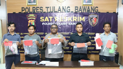 "Hari ini kami menggelar konferensi pers terkait keberhasilan ungkap kasus pembunuhan berencana yang dilakukan oleh seorang suami kepada istrinya sendiri. Pelaku ditangkap hari Kamis (30/03/2023), sekitar pukul 14.30 WIB, saat sedang berada di rumah mertuanya di Kampung Tri Dharma Wira Jaya, Kecamatan Banjar Agung", kata Kapolres Tulang Bawang AKBP Jibrael Bata Awi yang didampingi Kasat Reskrim AKP Wido Dwi Arifiya Zaen dan PS Kanit Resum, Aiptu Robert H Purba pada hari Jum'at (31/03/2023) sekira pukul 13.30 WIB di aula Mapolres setempat.